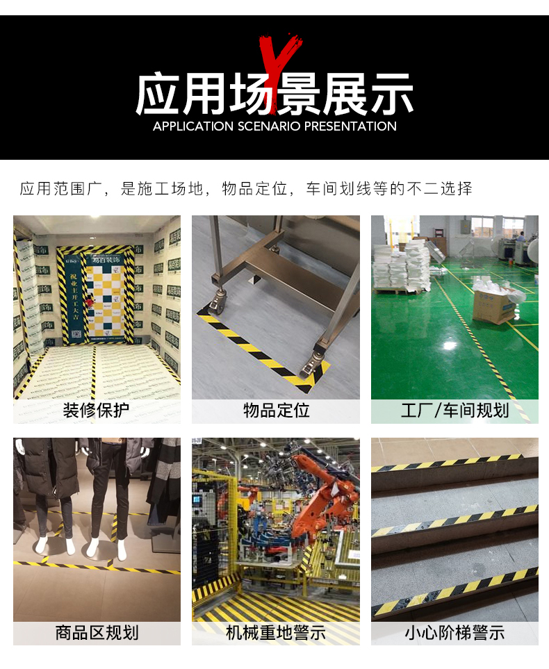 Application:widely used for floor marking of sport courts, factories, off ces, banks, mail, parking lots, etc.It canalso be used for decorating and surface protecting.